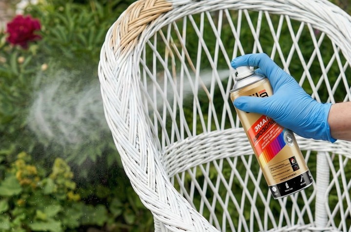 Плетёная мебель после обновления аэрозольной краской