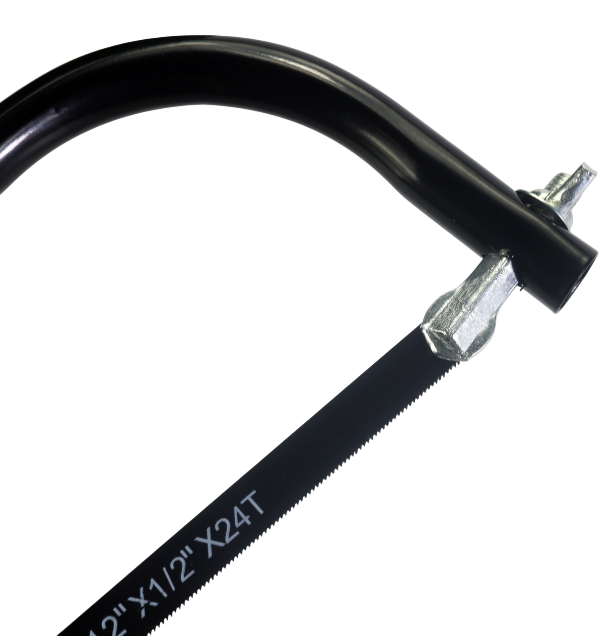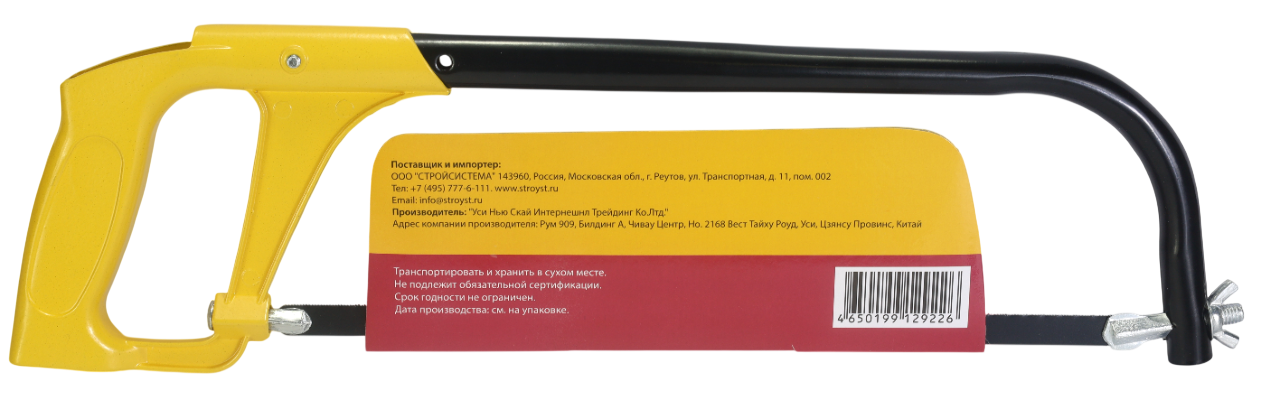 Ножовка состоит из металлической трубчатой рамы и эргономичной стальной рукоятки.