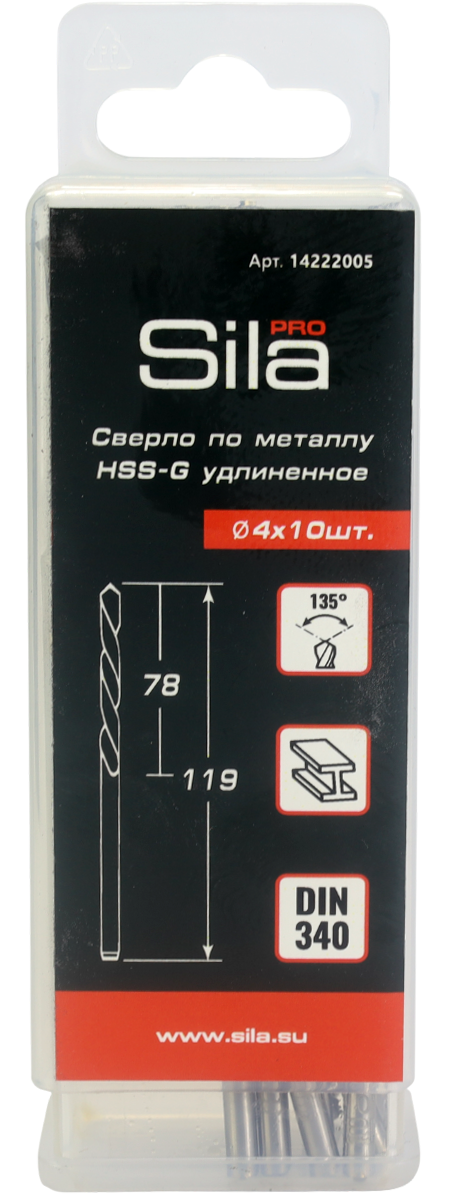 Сверла Sila изготовлены из быстрорежущей стали. Они прочные, устойчивые к излому и имеют высокую производительность. Режущая часть отшлифована нитридом бора. Изделия обладают повышенной стойкостью и меньшим радиальным биением. У сверл Sila оптимальный размер и геометрия канавки, что обеспечивает отличный отвод стружки и ускоряет работу. Поставляются в пластиковом боксе с подвесом.