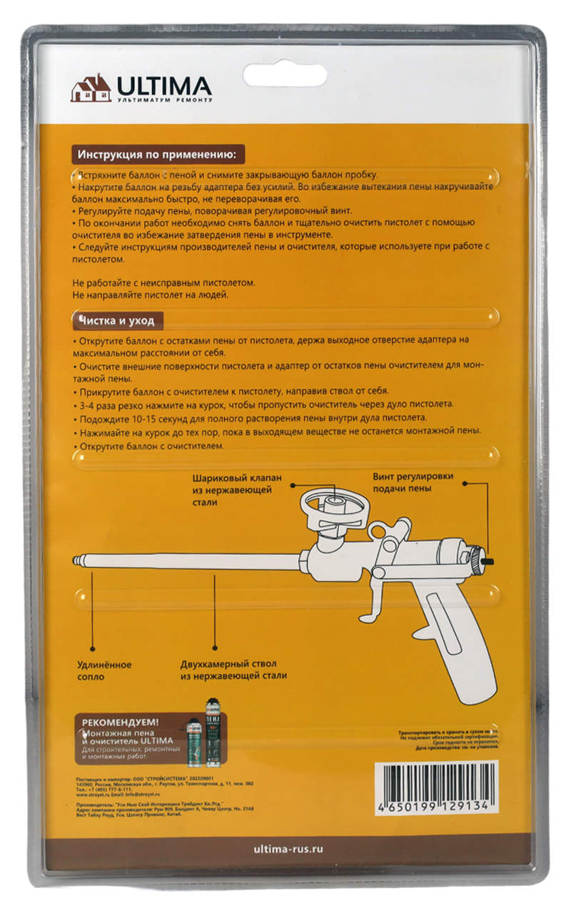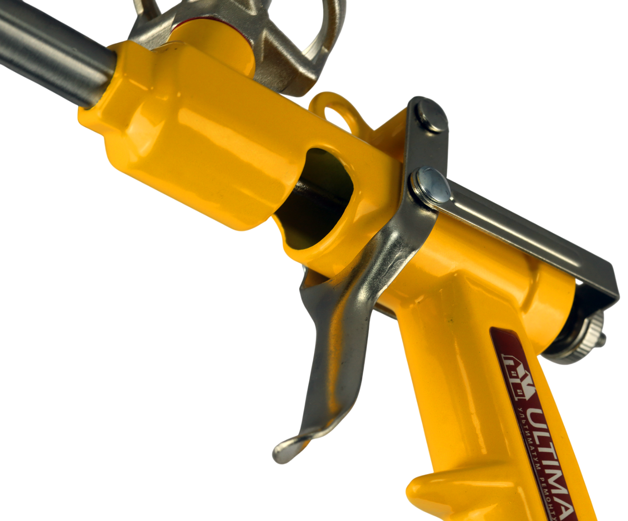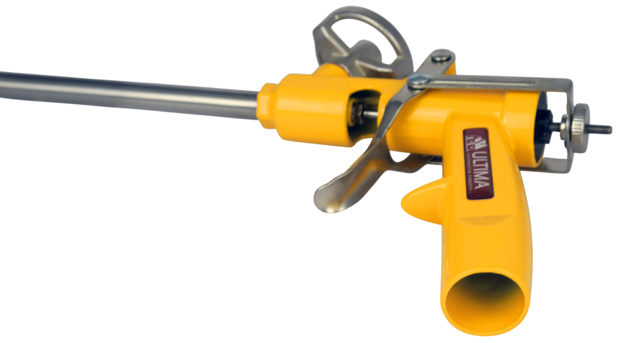 Двухкамерный ствол обеспечивает оптимальный выход пены. Конструкция пистолета, и носики (в комплекте) делают его удобным для работы в труднодоступных местах.