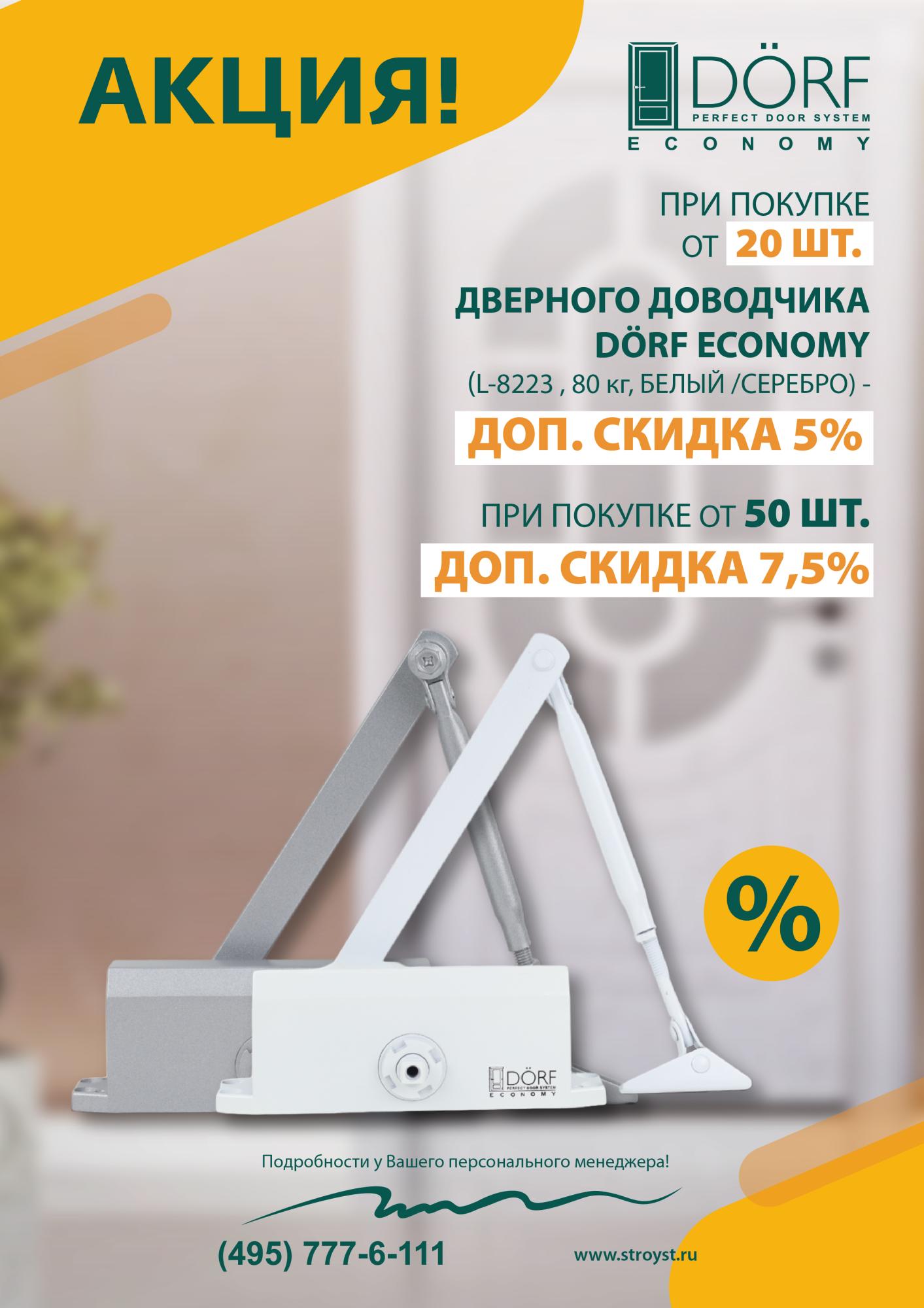 - ECO и DÖRF ECONOMY, L-8223 дверной доводчик, 80 кг, БЕЛЫЙ, (1к-1шт) ECO — доп. скидка 7,5%.